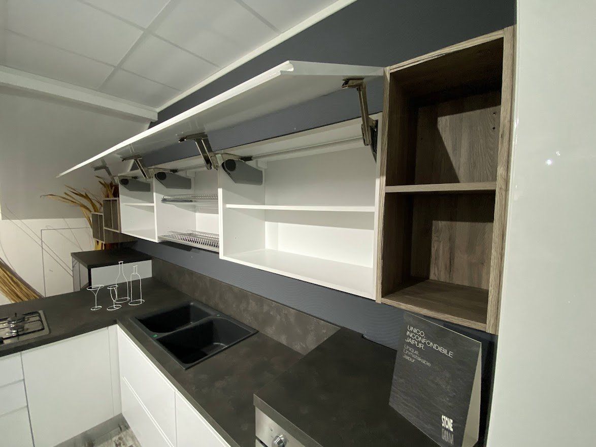Finitura Bianco Ghiaccio lucida con maniglia integrata sistema Gola