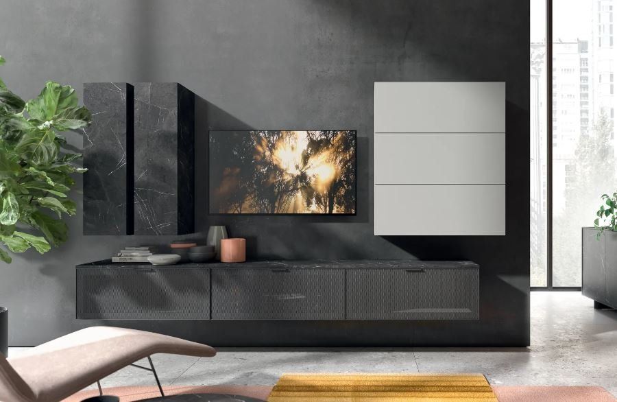 Superfici effetto pietra e metallo per dare risalto ed impreziosire con eleganza e luminosità per la propria zona giorno.